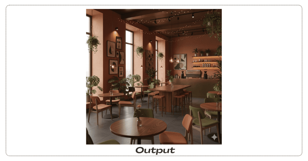 Upload: 8–10 reference images showing colors, textures, lighting, furniture, plants, and art styles you like.