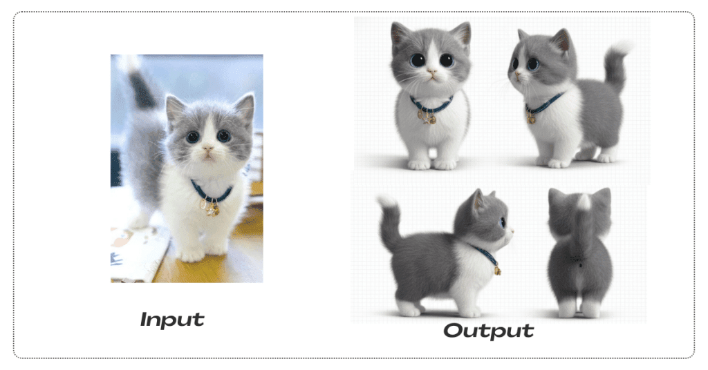 Create a professional character design sheet of this pet as a 3D animated character. Include: - Front view - Side profile - 3/4 view - Back view - Close-up of the face showing expression - A small walking animation pose lineup Keep the pet’s exact coloring, markings, and unique features consistent across all angles. Use a Pixar/Disney-style 3D look with clean cel-shading. Include a small color palette with hex codes for the main fur and eye colors. Use a clean white background with a subtle grid. Add the character’s name at the top. 4K resolution, suitable for a pitch deck.